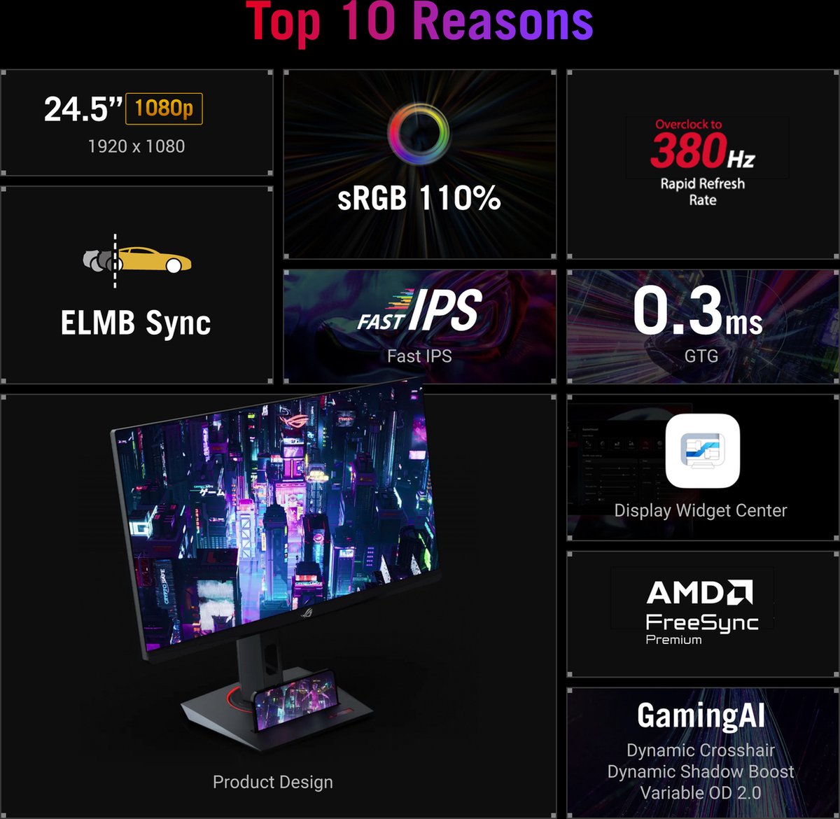 - Supersnelle responstijd: Dankzij ASUS Fast IPS-technologie geniet je van slechts 0,3 milliseconde reactietijd, waardoor beelden scherp en zonder vertraging worden weergegeven.