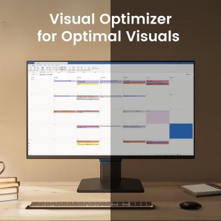 Of je nu documenten bewerkt, meerdere vensters naast elkaar gebruikt of ontspant met een serie: de GW2490C levert consistente kleuren en een comfortabele kijkervaring. De Visual Optimizer (V.O.) past instellingen automatisch aan op basis van omgevingslicht en met de speciale V.O.-sneltoets activeer je direct de meest comfortabele modus. De 144 Hz verversingssnelheid en FreeSync verfijnen bewegende beelden, waardoor alles vloeiender aanvoelt dan bij standaard 60 Hz‑schermen.