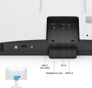 - Aansluitingen: 1x USB-C (22,5 W PD), 1x DisplayPort 1.2, 1x HDMI 1.4, 1x 3,5 mm audio