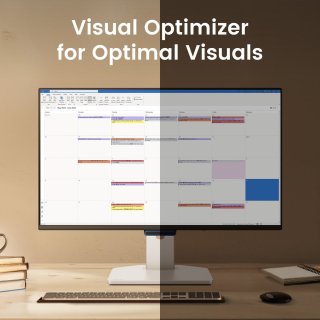 - Ontspannen voor je ogen: BenQ’s Eye-Care Triple Protection (Visual Optimizer, Low Blue Light en Flicker-Free) past helderheid en kleurtemperatuur intelligent aan en vermindert oogvermoeidheid tijdens lange werkdagen. De V.O.-sneltoets geeft direct toegang tot comfortabele instellingen.