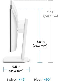 Ergonomie en design: Hoogte verstelbaar, kantelbaar, draaibaar en 90° pivot — vind altijd de beste werkpositie. Het 4-zijdige ultradunne randontwerp maximaliseert schermruimte en geeft een strakke, moderne uitstraling.