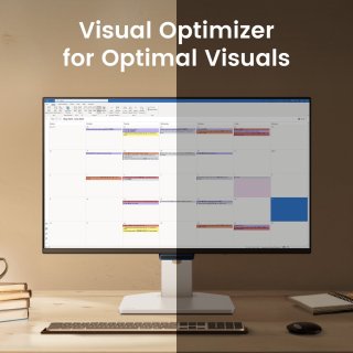 Drievoudige Eye-Care bescherming: BenQ’s Triple Eye Protection (Visual Optimizer, Low Blue Light en Flicker-Free) vermindert vermoeide ogen tijdens lange sessies. De automatische helderheidsregeling en de V.O.-sneltoets geven direct comfort zonder gedoe.