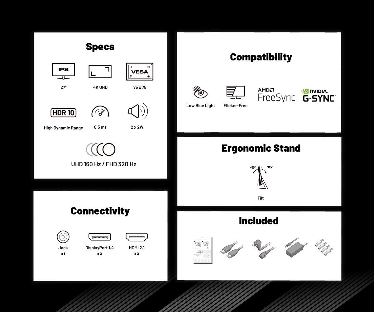 - Verversingssnelheid: Verversingssnelheid van 160Hz (standaard) en 320Hz in FHD-modus