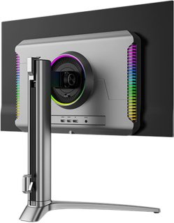 - Hoogte verstelbaar, kantelbaar en 90° pivot‑functie voor optimale kijkpositie; kabelmanagement en slank, randloos design met LED‑accenten voor een verzorgde setup.