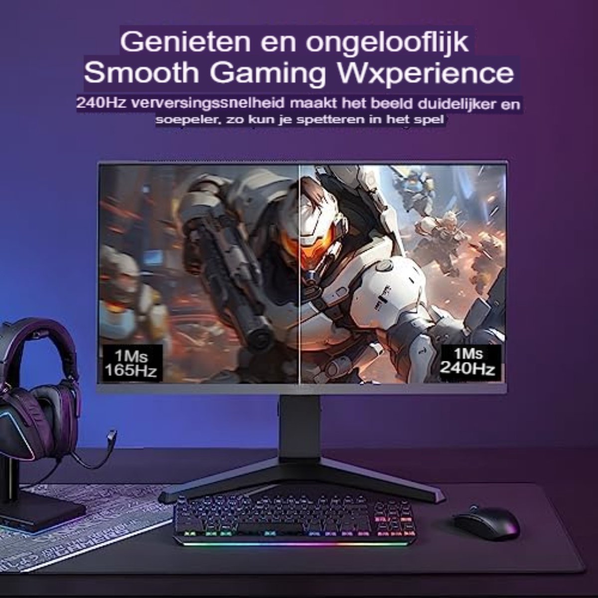 - Supersnelle responstijd van slechts 1 milliseconde: Ideaal voor snelle gameplay en competitieve gaming, waarbij elke beweging direct wordt doorgevoerd zonder vertraging.