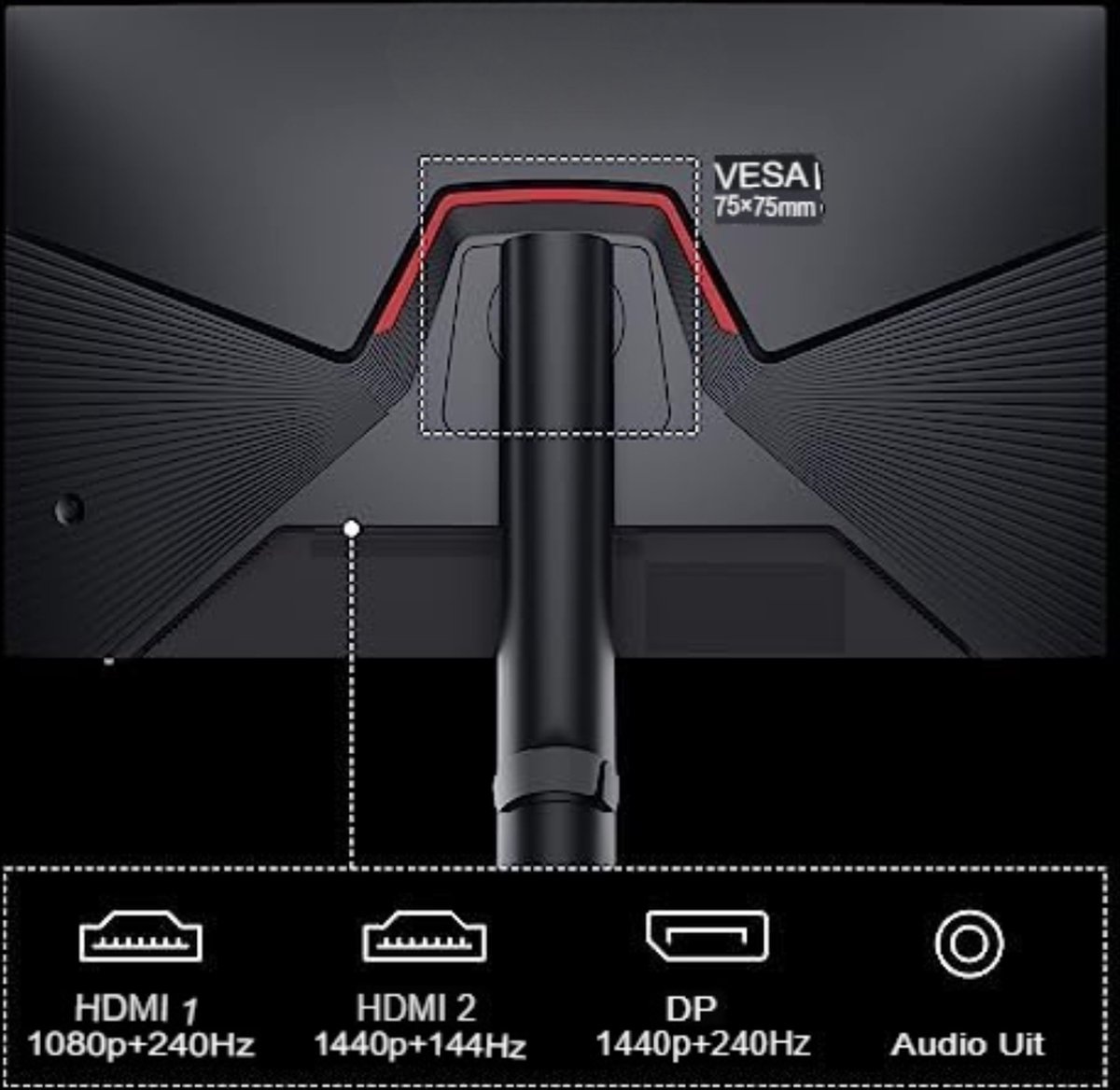 - VESA montage compatibiliteit: Bevestig de monitor eenvoudig aan een muur met VESA-75mm x 75mm voor een ruimtebesparende setup.