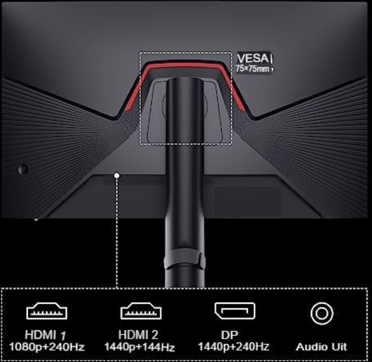 - De monitor ondersteunt een resolutie tot 1440p @240Hz via DisplayPort en 1080p @240Hz via HDMI, ideaal voor gaming en werk.