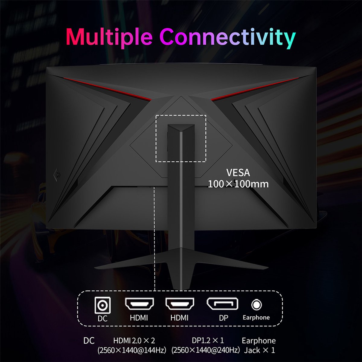De ergonomische 1000R gebogen kromming omhult je bijna, waardoor je je volledig in de game kunt onderdompelen. De flexibele kantelfunctie van -5° tot 20° stelt je in staat om de perfecte kijkhoek te vinden, zodat je urenlang comfortabel kunt spelen zonder vermoeidheid. Een strak, zwart ontwerp past perfect in elke opstelling en de monitor is VESA-montage compatibel voor extra vrijheid in je werk- of game-ruimte.