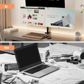 - Direct overzicht en betere focus — Minder losse pootjes en kabels, meer ruimte voor documenten en apparatuur; ideaal voor productief werken en geconcentreerde sessies.