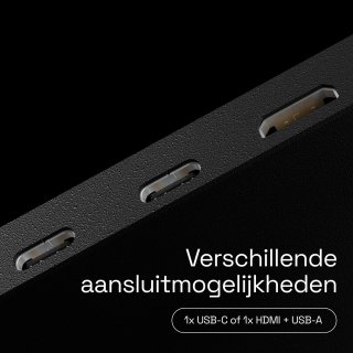 - Veelzijdige aansluitingen – plug & play via USB‑C/Thunderbolt of HDMI + USB‑A; USB‑C ondersteunt power‑delivery en video (tot 45 W powerthrough).