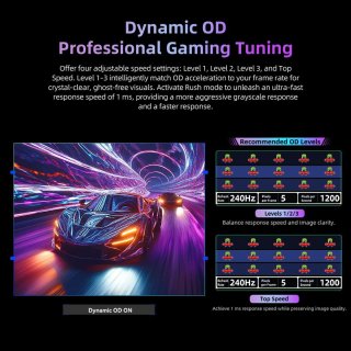- Uitzonderlijke snelheid: 240 Hz verversingssnelheid en 1 ms MPRT-responstijd zorgen voor extreem vloeiende beelden en minimale motion blur — essentieel voor snelle shooters en competitieve gameplay.