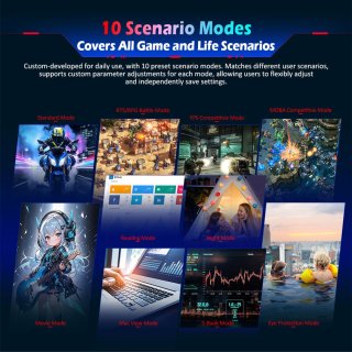 - Gezond kijkcomfort – Low Blue Light LED-achtergrondverlichting en softwarematige filteropties verminderen vermoeide ogen. DC-dimming voorkomt flikkering en de nachtzichtmodus past helderheid dynamisch aan voor comfortabele lange sessies.