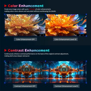 - HDR400 & beeldverbetering – HDR400 verhoogt helderheid en contrast voor realistischere beelden. Keuze uit HDR Auto, HDR Gaming en HDR Landscape plus 10 niveaus kleurverbetering en 5 niveaus contrastverbetering voor optimaal beeld per situatie.